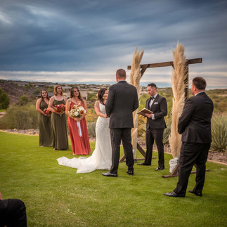 The ceremony, reception and catering were at Wickenburg Ranch Golf & Social Club, and the weather was definitely on our side, with very dramatic clouds, natural light diffusers.
